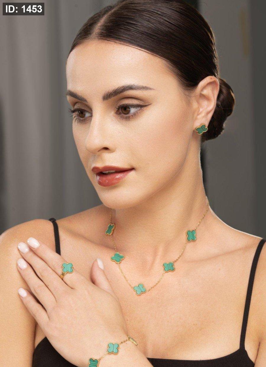 شامل 4 قطع ( حلق + خاتم + سنسال + اسوارة )