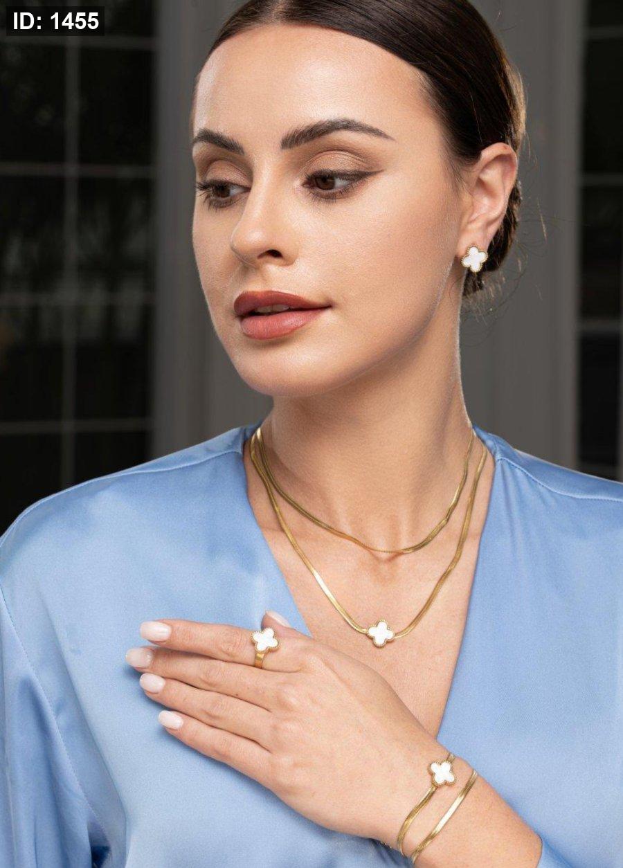 شامل 4 قطع ( حلق + خاتم + سنسال + سوارة )
