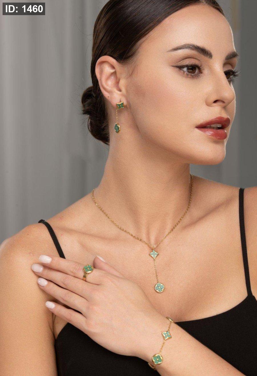 شامل 4 قطع ( حلق + خاتم + سنسال + سوارة )