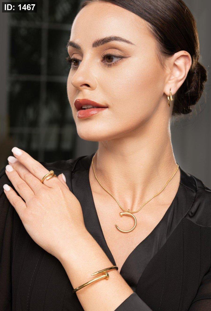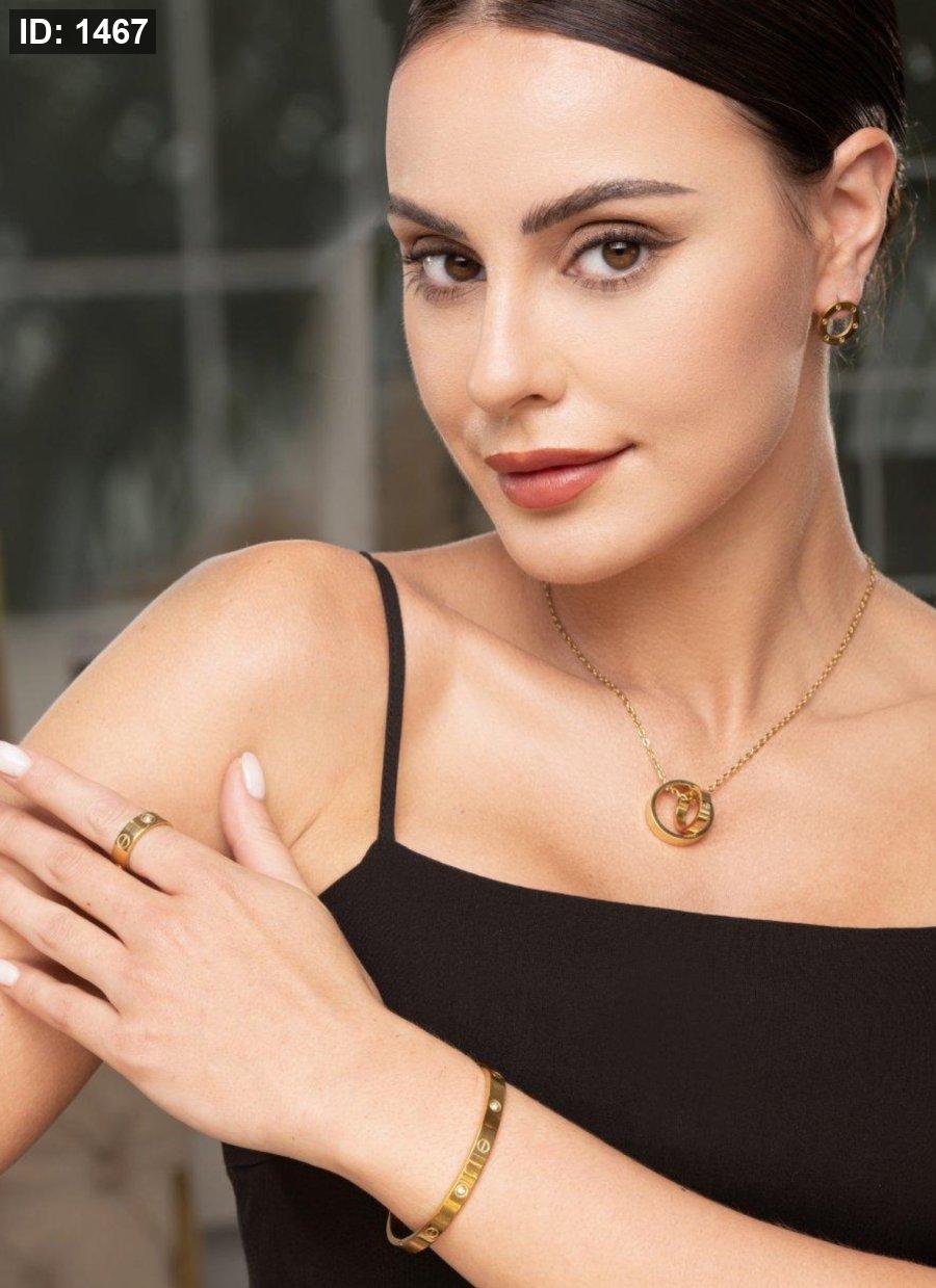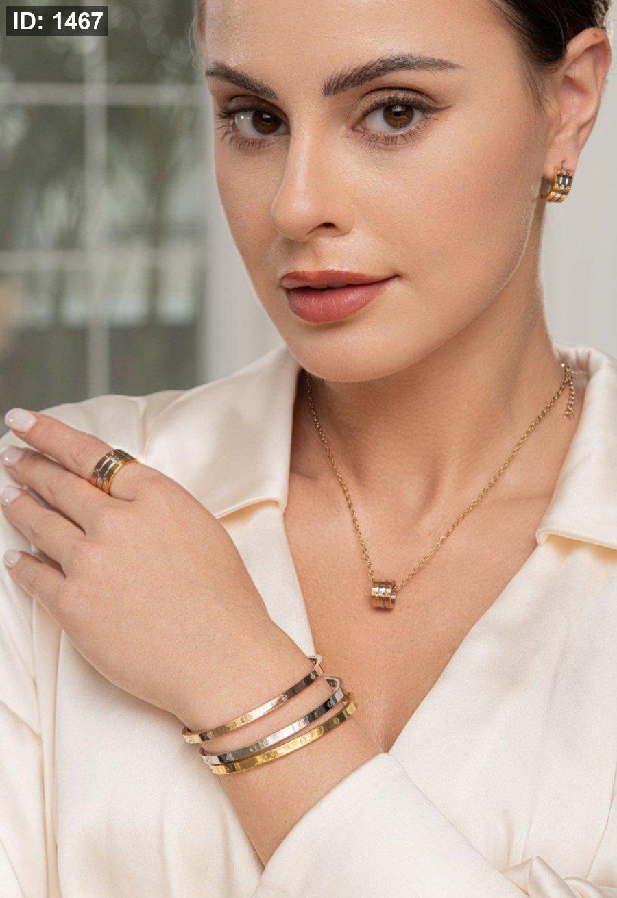 شامل 4 قطع ( حلق + خاتم + سنسال + اسوارة )