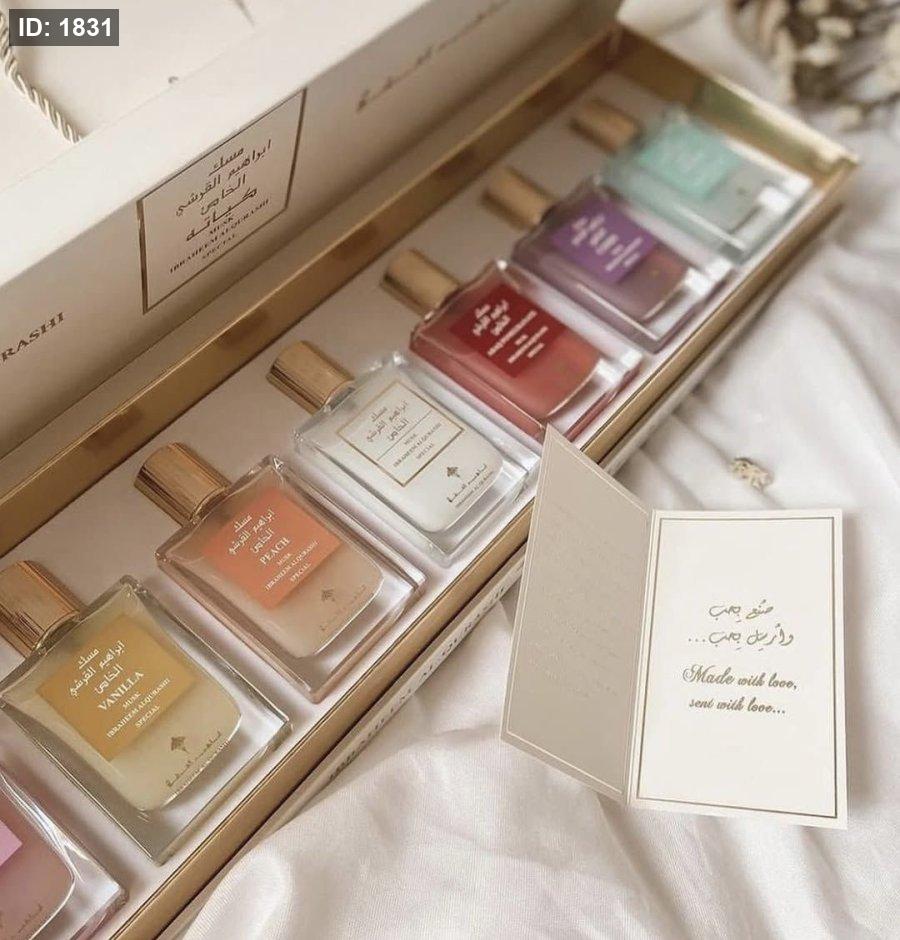 تحتوي هذه المجموعة على مجموعة ابراهيم القرشي الكاملة من عطور المسك لتناسب جميع الاذواق :